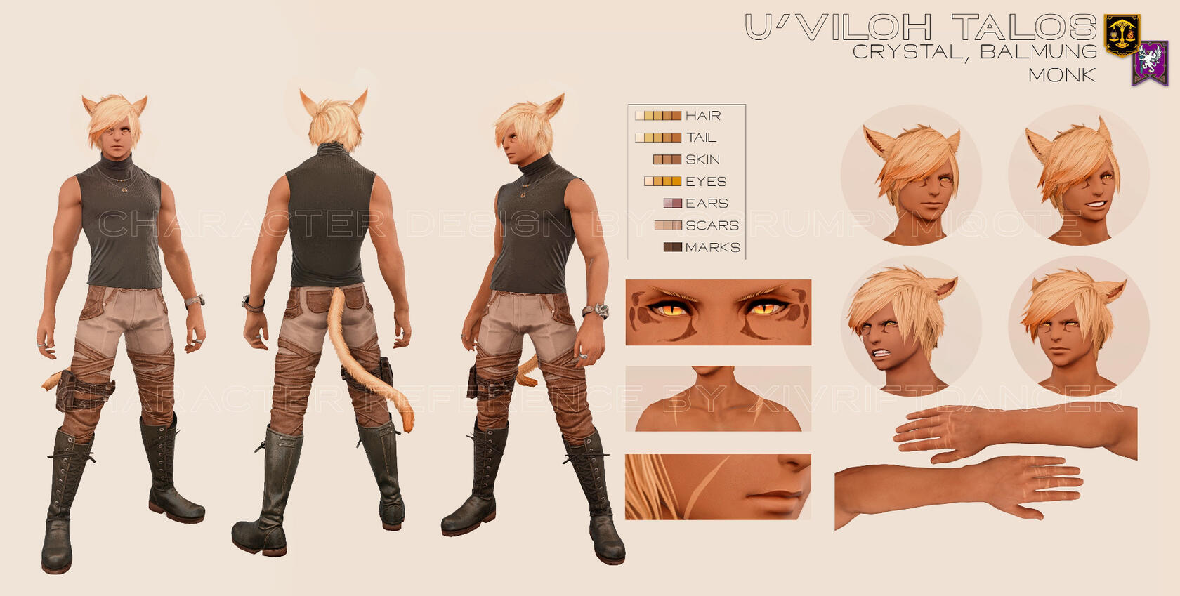 Short-tempered, loyal to a fault. U'viloh Talos is a man born into a wealthy Ul'dahn family, but has found himself tangled in the comings and goings of less-than-legal company. Employed as Security, he does not hesitate to guard that which he considers precious. Let not his furrowed brow fool you, this Seeker cannot turn down someone in need of help.➤ Walk-up and /tell (DM) friendly!